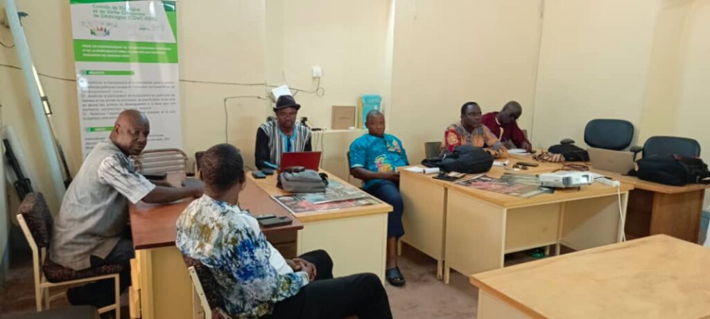 Une séance de travail a eu lieu entre le Centre d’Études et de Recherche Appliquée en Finances Publiques (CERA-FP) et le CDVC-DDG. Cette rencontre, tenue au siège du Comité de dialogue et de veille citoyenne (CDVC), s’inscrivait dans le cadre de la troisième phase du projet « Pour un programme de renforcement de la participation citoyenne et de la redevabilité dans la gestion des finances publiques ».